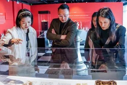 图|讲解员介绍外销扇、师生共赏文物、讲解员介绍藏品