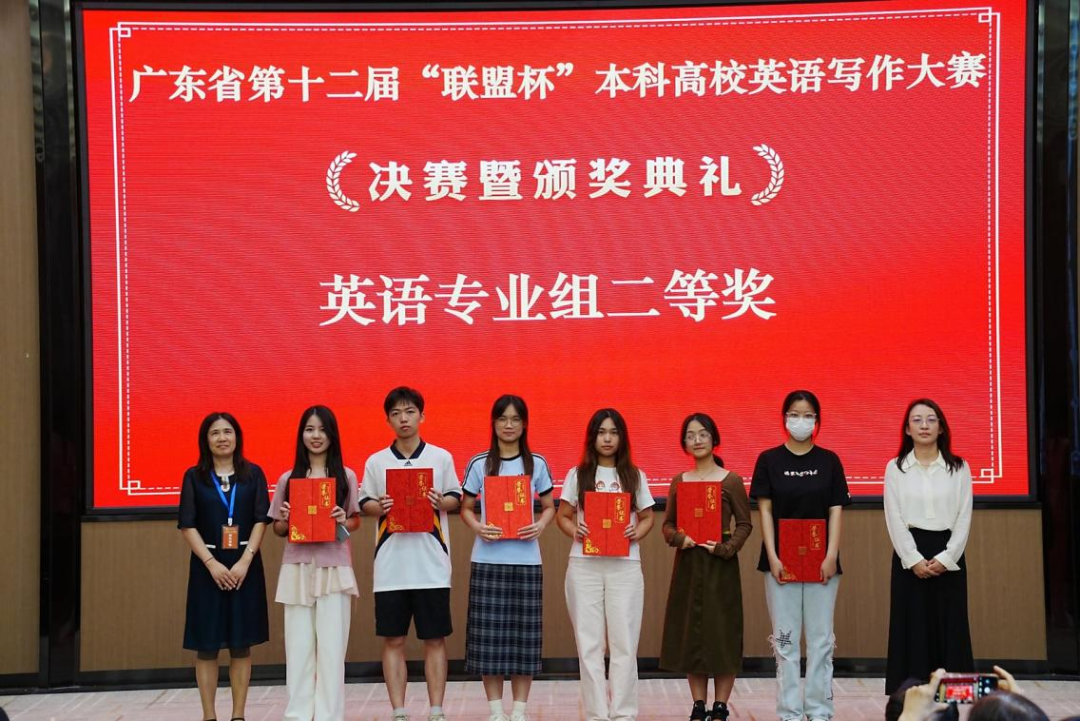 我校外国语学院党总支书记、副院长何瑜受大赛组委会邀请作为评委嘉宾出席此次大赛决赛和颁奖典礼,并带领我校指导教师李国玉与七名学生参与本次决赛,其中外国语学院英语专业学生赖家钰获得本次大赛英语专业组二等奖、英语专业学生苏芝侨、余慧琪获得英语专业组三等奖;药学院学生张幼华、洪欣琦,护理学院学生丘嘉琳、公共治理学院学生梁琳静均获得大学英语组三等奖;外国语学院教师黄珍、李国玉、何勇、罗彩虹、李薇、马婷、王圣冉获得大赛优秀指导老师奖。我校学生在本次决赛中获得的佳绩展现了我校外国语学院近几年来在英语写作教学的改革所取得的成果。