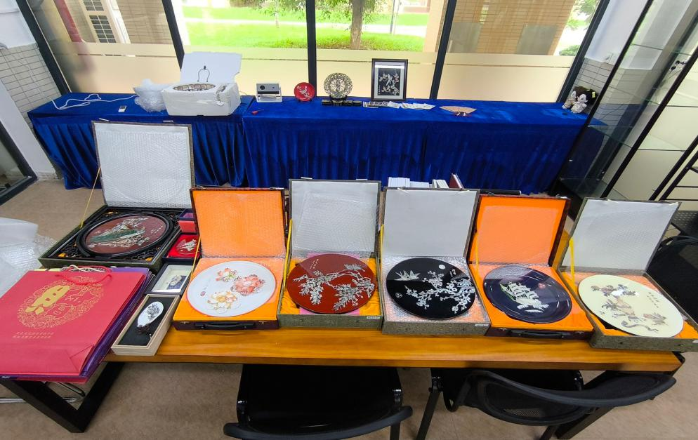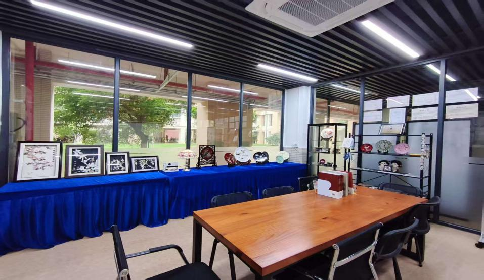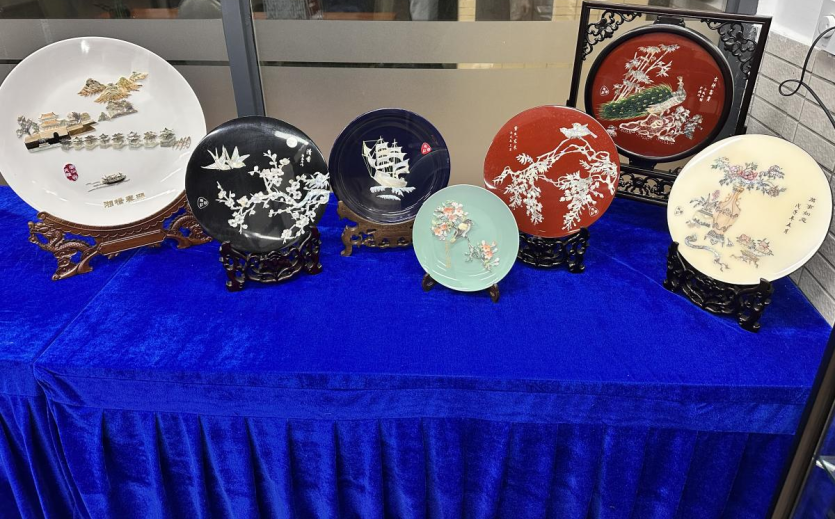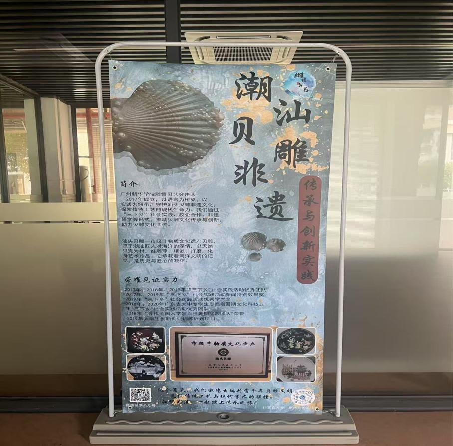 第九届雕情贝艺突击队在陈绮雯老师的指导下,有序布置潮汕贝雕非遗传承与创新实践展,为在校师生提供近距离了解潮汕贝雕的平台。