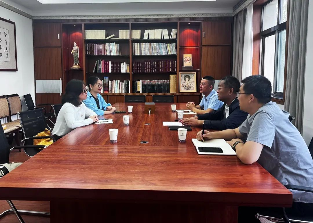2025年7月31日上午,广州新华学院外国语学院执行院长廖益清,党总支书记、副院长何瑜,党总支副书记、实践队指导老师邢佳佳一行赴敦煌研究院,就深化校企合作、共建实践基地等事宜开展调研交流。敦煌研究院党委委员、纪委书记王建党,院团委书记、办公室副主任许强,院团委副书记田小强出席座谈会。