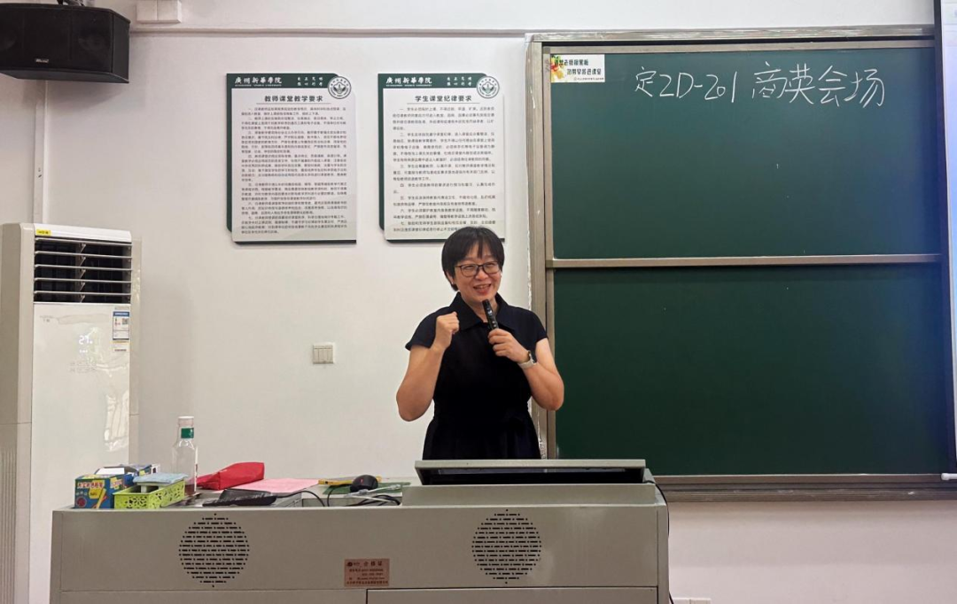 在分享中,廖院长还重点介绍了外院 “师资国际化、升学全球化、就业多元化” 的办学特色与育人优势,为新生描绘了清晰的发展蓝图。最后, 她引用毛主席与苏轼诗词,勉励同学们胸怀天下、志存高远,并祝愿大家在新华园 健康成长、全面发展。