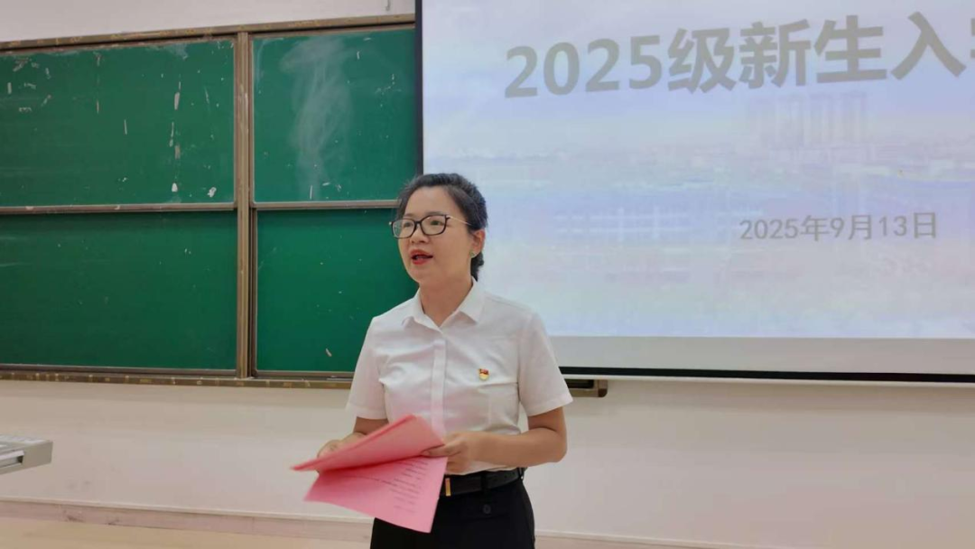 学院党总支书记何瑜在大会上寄语新生。她引用习近平总书记的殷切嘱托——“青年是整个社会力量中最积极、最有生气的力量,国家的希望在青年,民族的未来在青年”,勉励同学们在未来1400多个日夜里,以实际行动践行“五爱”让青春与时代双向奔赴。一是爱自己。 遇到想不明白的事,就到操场吹吹风;跨不过的坎,不妨给父母打个电话、给老师朋友发条微信。爱自己,就是给情绪一个出口,给成长一些耐心。二是爱学习。 学习不应局限于课堂,要潜心钻研专业知识,积极参加“演讲比赛”“挑战杯”等学科竞赛,勇敢走向“三下乡”等社会实践,在解题与解民生中体悟“学会学习”。三是爱同学。 她勉励大家“退一步,海阔天空;进一步,美美与共”,在理解与扶持中共同成长。四是爱母校。 她深情指出,中国需要清华,也需要新华。今天我们因新华而聚,未来新华也将由我们共同书写。爱母校,就是把青春与热情融入学校发展,用行动为新华添彩。五是爱祖国。 她提及9·3阅兵中“东风-5C”战略核导弹方队驶过长安街时的铿锵解说:“打击范围覆盖全球,全时戒备、有效威慑”,这不仅是祖国给予的安全感,更是青年必须接过的时代接力棒。最后,她寄语新生:“回头看,轻舟已过万重山;往前看,长路漫漫亦灿灿。愿你们带着‘五爱’的行囊,把青春的答案书写在祖国的大地上!”