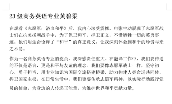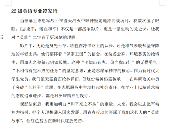 志愿军将士浴血奋战、保家卫国的壮举,本质是对党和人民事业的无限忠诚与无私奉献。通过本次主题党日观影活动,党员同志们深刻意识到和平来之不易,是无数英雄用生命和鲜血换来的,要以先烈为镜,时刻反躬自省,将铁的纪律转化为日常习惯,在日常的生活和学习上坚守信念,勇于担当,方能不负时代,不负人民。